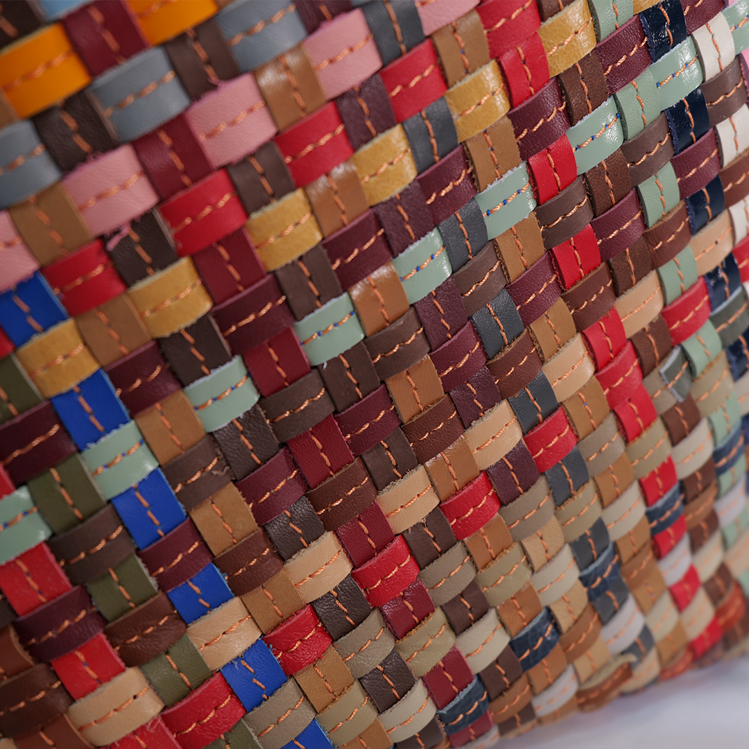Materiale: Pelle 100% di alta qualità con lavorazione artigianale a intreccio multicolore.